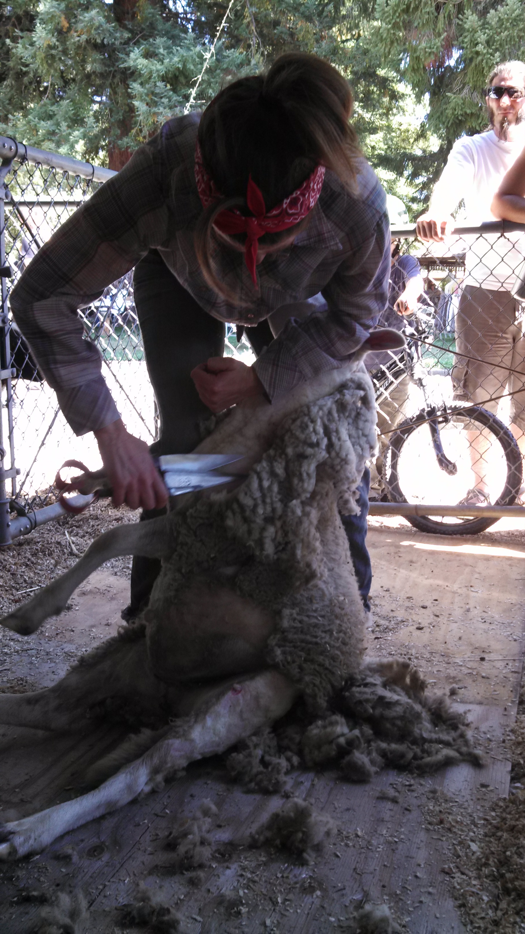Alice Welfle-Erskine shears a sheep at Not-So-Simple Living Fair in Boonville, CA