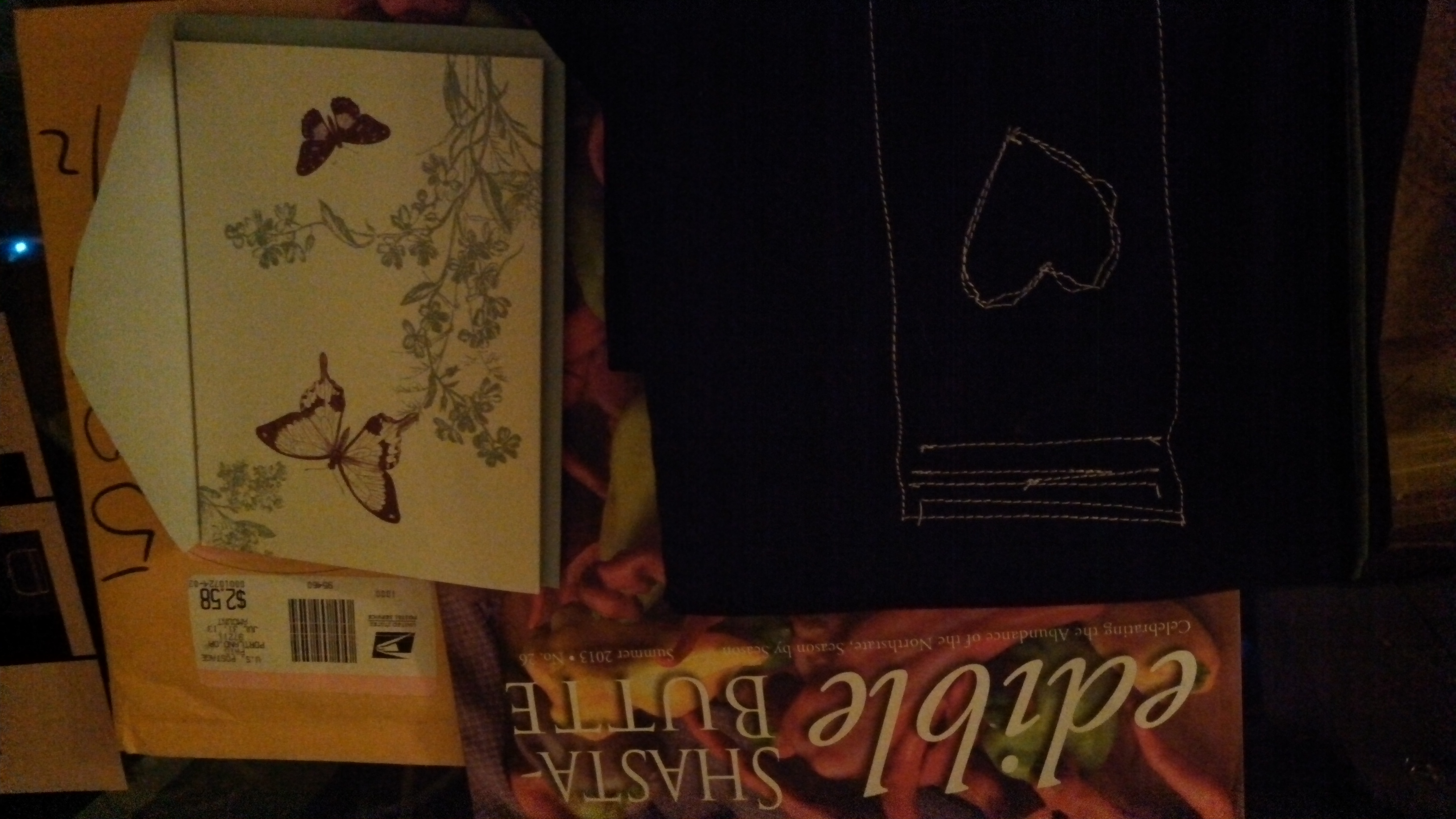 The second package came from Chico, mailed by a friend and Mendocino native, Isa. (Funny how we’ve swapped hometowns!) She send an issue of the Edible Shasta Butte magazine, pointing me to an article about the Chico Seed Lending Library. Very cool concept which allows people to borrow and return seeds from the Butte County Library!